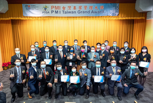 â–²2020年專案管ç†å¤§çŽ-æ¨™ç«¿ä¼æ¥­çŽã€æ¨™ç«¿å°ˆæ¡ˆçŽåŠå‚‘出專案經ç†çŽå¾—主大åˆç…§ã€‚因疫情關係,也是一場別緻戴å£ç½©çš„é ’çŽå…¸ç¦®ã€‚